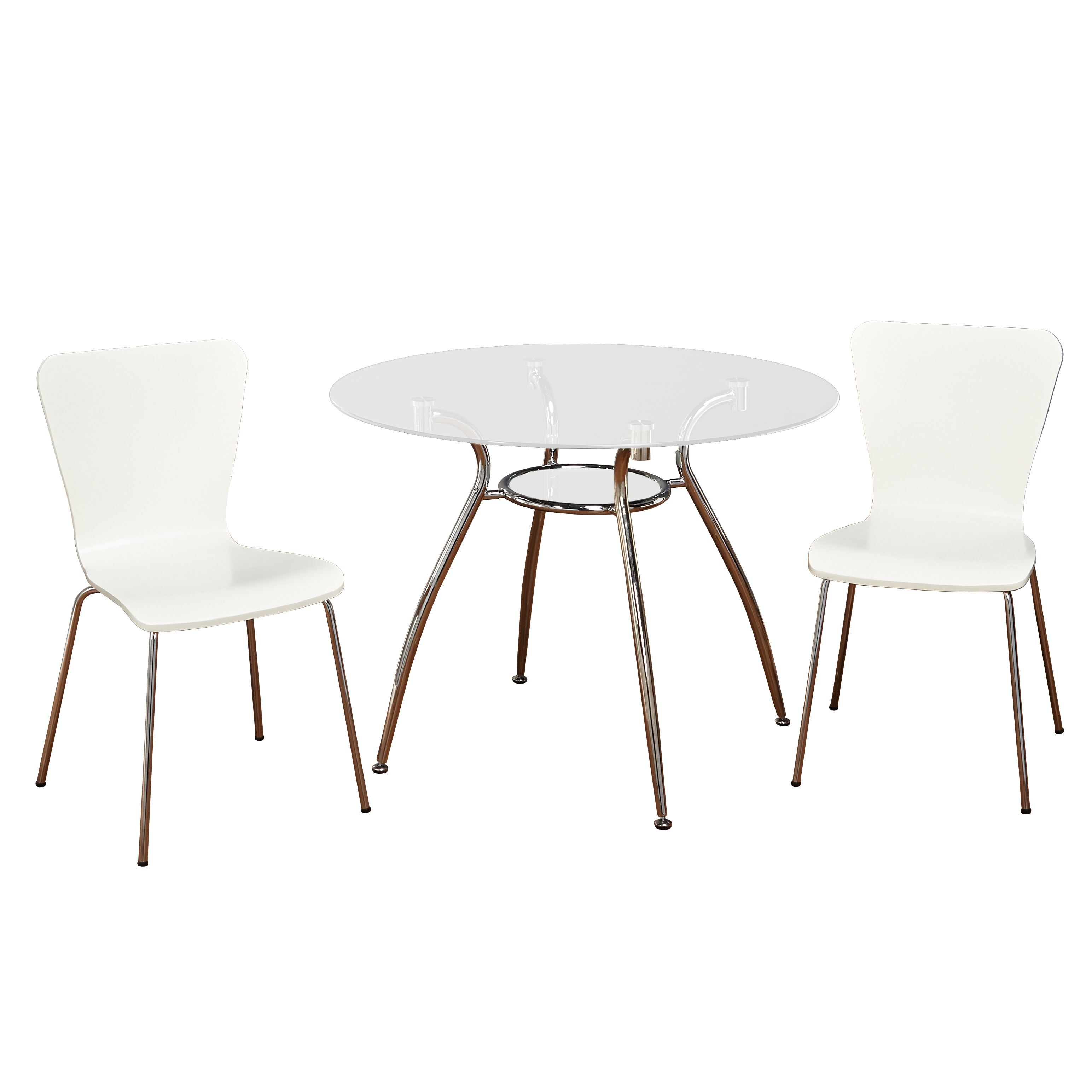 This 3 piece dinette set includes a small round dining table and 2 dining chairs;
